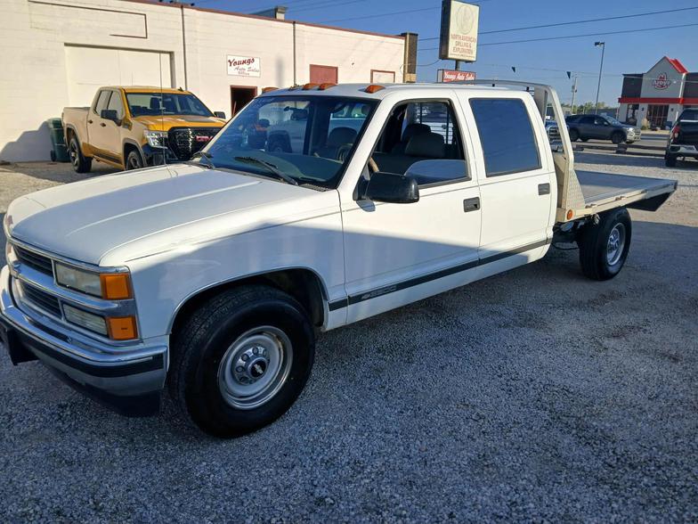 This 1999 Chevy 3500 2WD crew-cab automatic is a hard-to-find truck with a nice Hillsboro aluminum flat bed! It has a 454 Vortec V8 engine, excellent tires, air, tilt and cruise control, and 138,000 miles. Asking $9950. VIN is 1GCGC33JXXF052920.